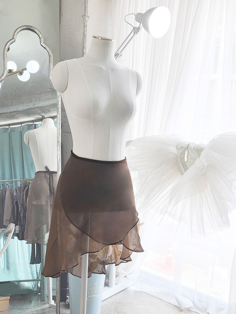 Chiffon Wrap Skirt. 55cm. Espresso