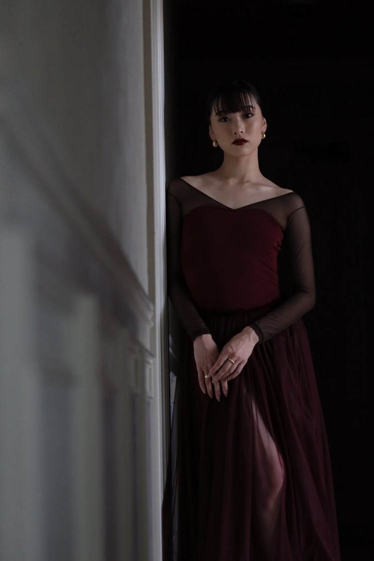 Unoa. Grand plié. Long sleeve. Brown×Burgundy