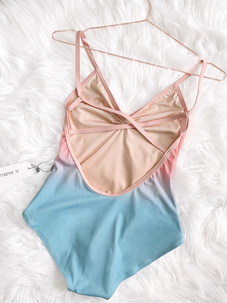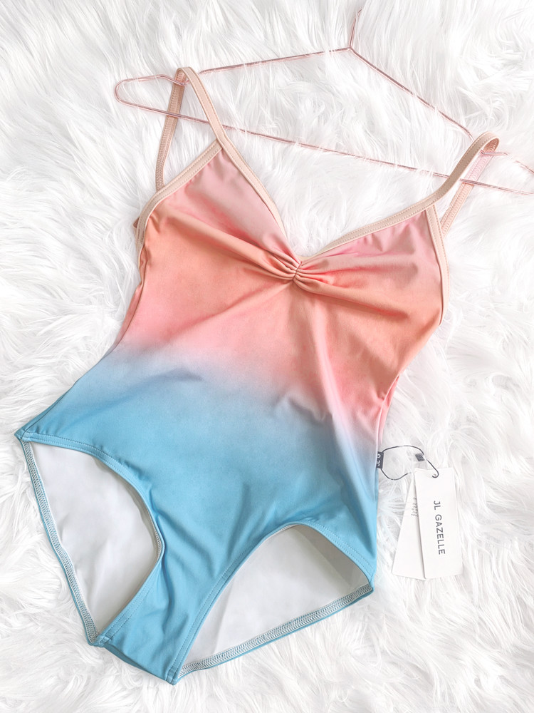 JL Gazelle. Carisse Print Leotard. Beach Sunset Ombre. Pinch