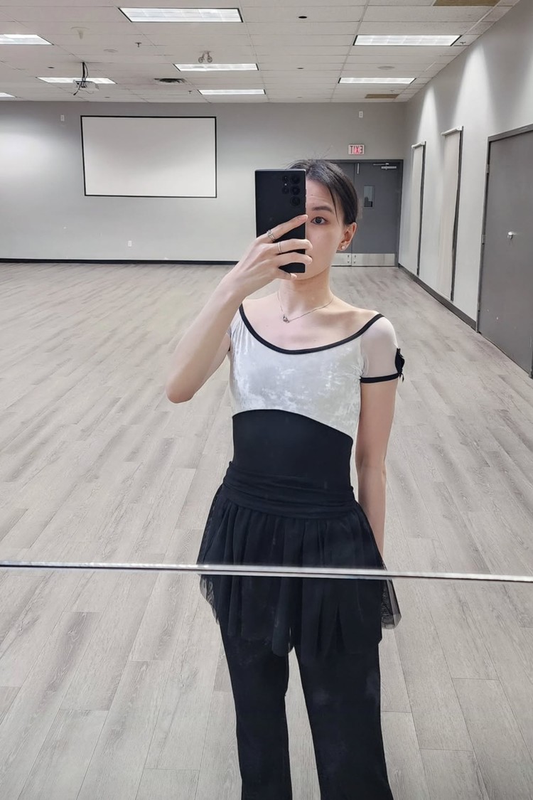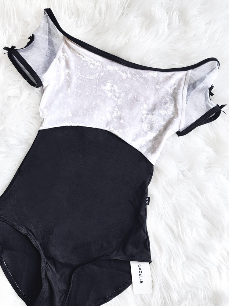 JL Gazelle. Custom Isabelle Duo Bow Sleeve Leotard. Black/White CV